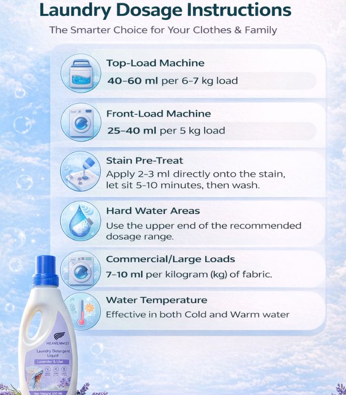 HeavenMist Fabric Care Liquid gives your clothes long-lasting freshness, a soft touch, and reliable fabric protection. Perfect for daily use, it helps keep clothes looking new and smelling fresh. It enhances freshness and protects fabrics from becoming dull over time.